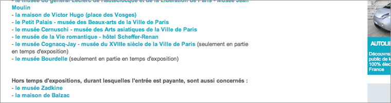 Bref, quelles que soient les modalités précises, ce qui était une exception est devenue une manière détournée de supprimer la gratuité temporairement. Mais combien de visiteurs, croyant ces musées gratuits, s’y cassent le nez ? Une disposition dont n’est même pas au courant, semble-t-il, le maire de Paris Bertrand Delanoë à qui nous avons posé la question lors de son t’Chat du 16 décembre 2011 (43,30). Il a nié catégoriquement l’existence de cette pratique !