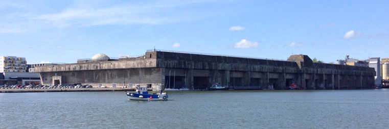 Seconde proposition du Grand Café, cette fois hors les murs puisque le centre d’art contemporain investit une des alvéoles de la base sous-marine de Saint-Nazaire, gigantesque - c’est peu dire - bâtiment de béton longtemps méprisé des habitant.e.s. Pour cause, il fut construit de 1941 à 1943 sur ordre des Nazis afin d’accueillir des sous-marins de combat. Délaissé après la guerre comme toute la zone environnante devenue friche industrielle, c’est à partir des années 1990 qu’un projet de réhabilitation se fit jour avec le programme de « Ville-Port ». L’ancien maire parlait, avec ironie, de cette architecture fortifiée, troublante de démesure et d’austérité, de « dernier château de la Loire ». S’y ouvrirent en 2000 Escal’Atlantic, puis en 2005 LiFE (Lieu international des formes émergentes) et le VIP (scène musicale) destinés à accueillir concerts, expositions, spectacles…