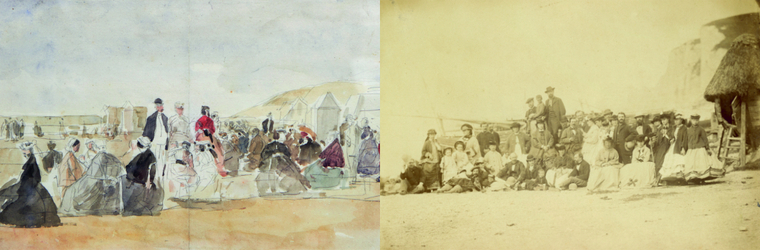 Plus liée aux impressionnistes, la formidable exposition « Photographier en Normandie (1840-1890). Un dialogue pionnier entre les arts » au MuMa du Havre. Confrontés, il devient évident que l’avènement de la photographie éloigne les peintres du souci de reproduction mimétique de la réalité. L’impressionnisme ne pouvait naître qu’à ce moment. Puisant dans une même culture visuelle, photographes (dont une rare femme au souvenir exhumé, Stéphanie Brisson) et peintres partagent de nombreuses sources d’inspiration, attiré·es pareillement en Normandie pour sa lumière et ses ciels changeants, comme pour sa proximité avec la capitale et, dans l’autre sens, avec l’Angleterre : le portrait, le spectacle de la mer, la vie naissante du tourisme à la plage, l’agitation des ports, la beauté des monuments… On est surpris du traitement similaire de tel ou tel sujet, jusqu’au cadrage parfois, les photographes précédant souvent les peintres. C’est le cas de scènes de plage par le peintre Eugène Boudin et les photographes Hippolyte Bayard et Bertall.